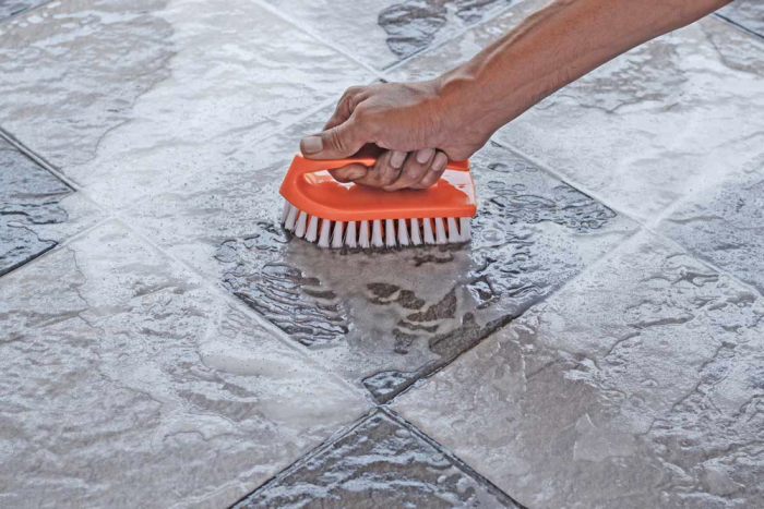 A good way to clean bathroom tiles is with vinegar. water in a spray bottle and spray directly . ..